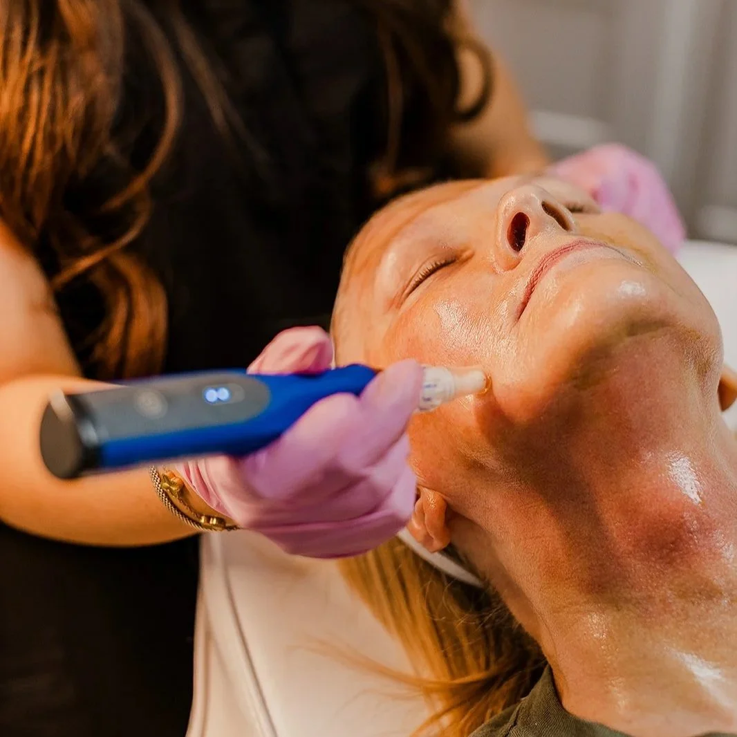 Our facials include a double deep cleanse, extractions, exfoliation, dermaplanning, masks, serums, and moisturizer.