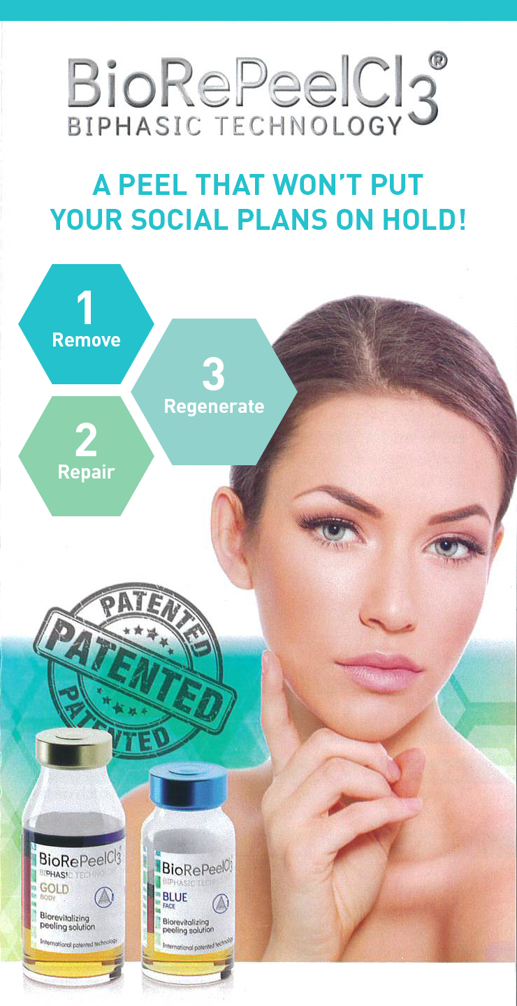 Revitalizing, beautifying and moisturizing. BioRePeelCl3 is a two-phase topical TCA Peel with specific action for face, neck and décolleté.